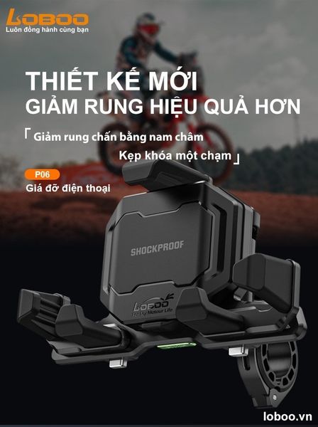 Thiết bị khóa chắc chắn, không bị bung: PH06 có cơ chế khóa cơ học một chạm giúp kẹp chặt điện thoại của bạn với tiếng "click" chắc chắn. Nó được chế tạo cho những con đường gồ ghề, chưa trải nhựa, vì vậy bạn có thể lái xe mạnh mẽ với sự tự tin tuyệt đối.