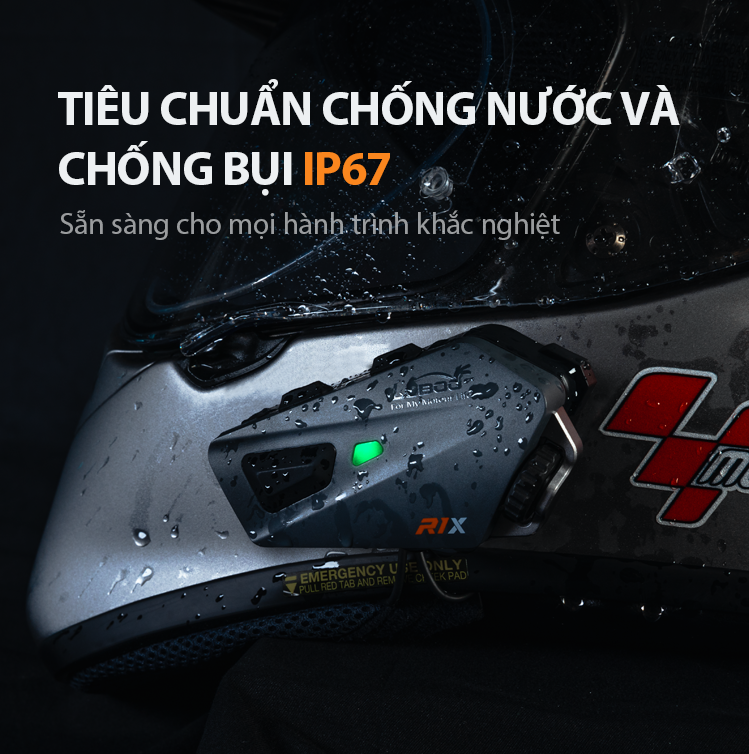Bền bỉ & chắc chắn Chuẩn IP67 chống bụi và nước, R1X sẵn sàng chịu được mọi điều kiện thời tiết khi bạn di chuyển.